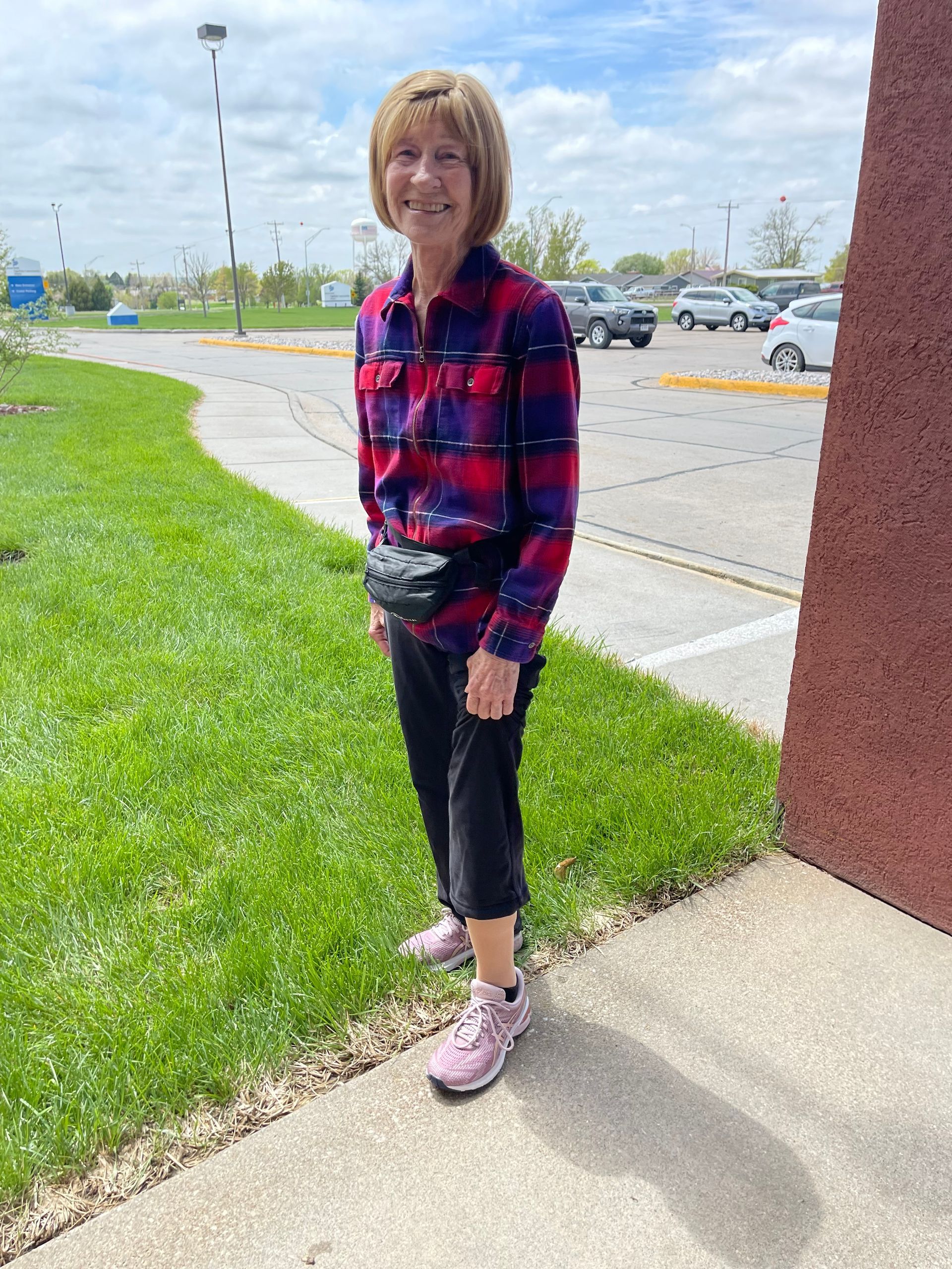 Margaret is wearing an Ossur Unloader Knee Orthosis for Knee osteoarthritis pain.